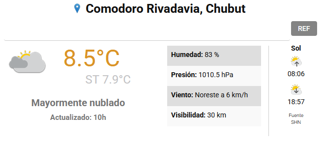 | 11:00 | 10° | Nubes y claros Sensación T. 10° |