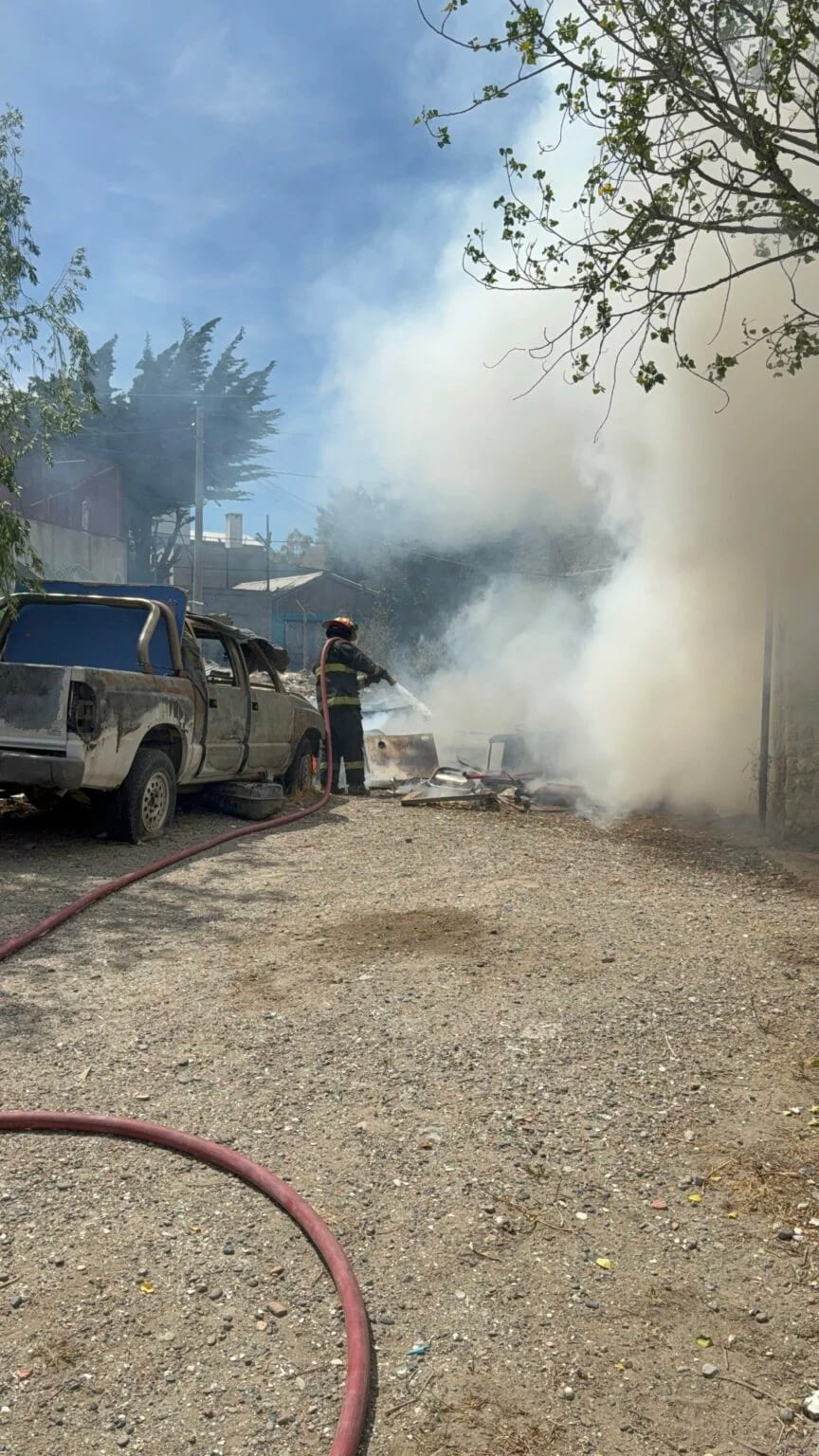 Este lunes al mediodía, las llamas afectaron madera y un vehículo en malas condiciones que estaba estacionado en el predio. Gracias al rápido accionar de bomberos y policía, no hubo daños mayores.
